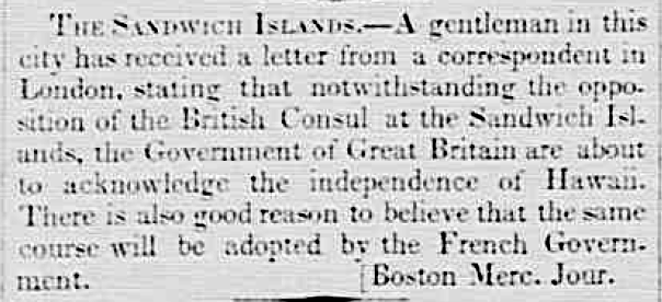 So too was this past holiday, the 28th of Nov.; there was no work done on Oahu, as it was a day of rejoicing for the independence of this Kingdom.