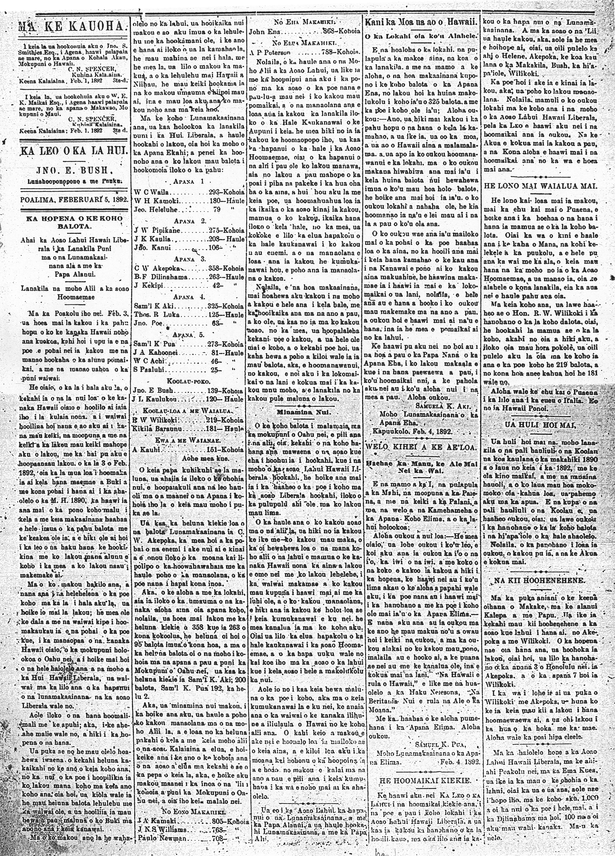 I have been saying that much of the online images of the newspapers done by ulukau are unclear because they were taken from bad microfilms. This is often the case. However, I was just shown a page of Ka Leo o ka Lahui that someone has volunteered to manually type. The online image they received is the same image that is online. It is somewhat legible, but the bottom is totally unclear and would have resulted in strings of @s. I went to the microfilms, and they are actually legible. Here is how this one page compares.