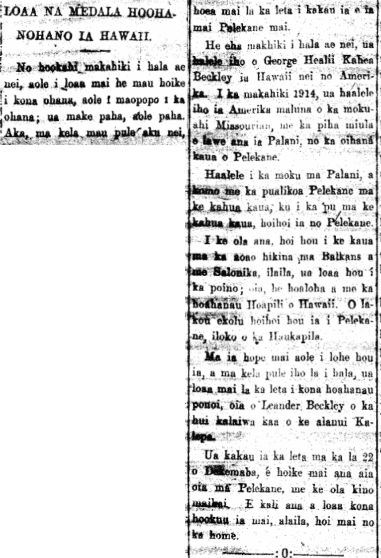 [I am not sure about the first reference to “four years ago” and then “1914”… Also, does anyone know who this Hoapili refers to?]