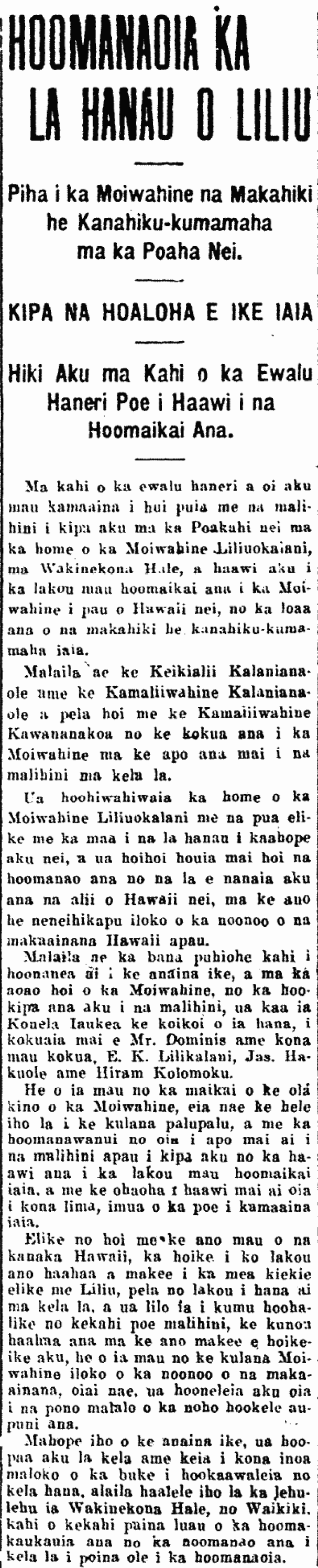 Just as it is with Hawaiians, who show their deference and affection for their royalty, like Liliu; so they did on this day, and this was followed as an example by some of the malihini, who bowed deeply and with affection, showing that the Queen’s position remained the same in the minds of the people even if she is left without her rights in ruling the nation.