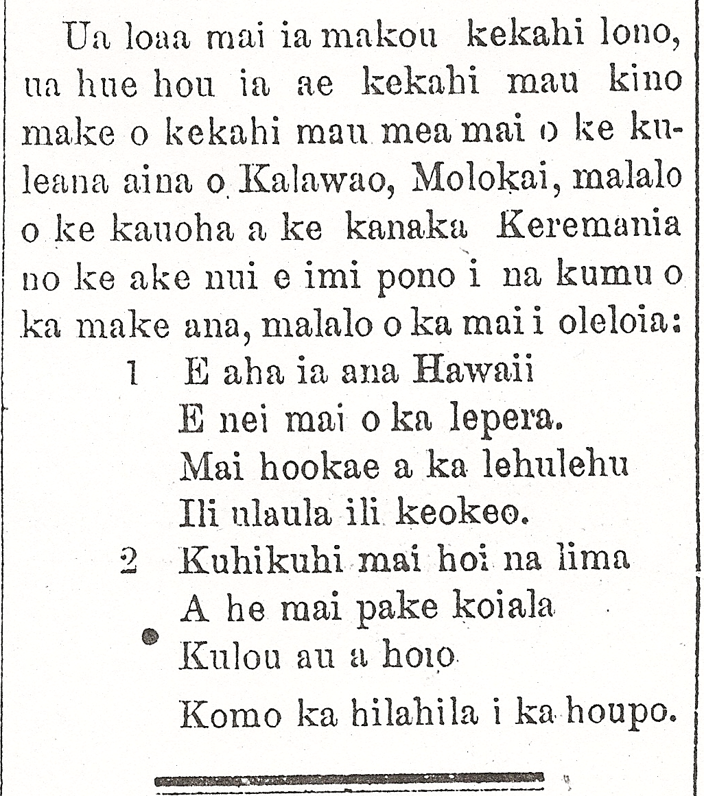(Ola o Hawaii, 3/22/1884, p. 3)
