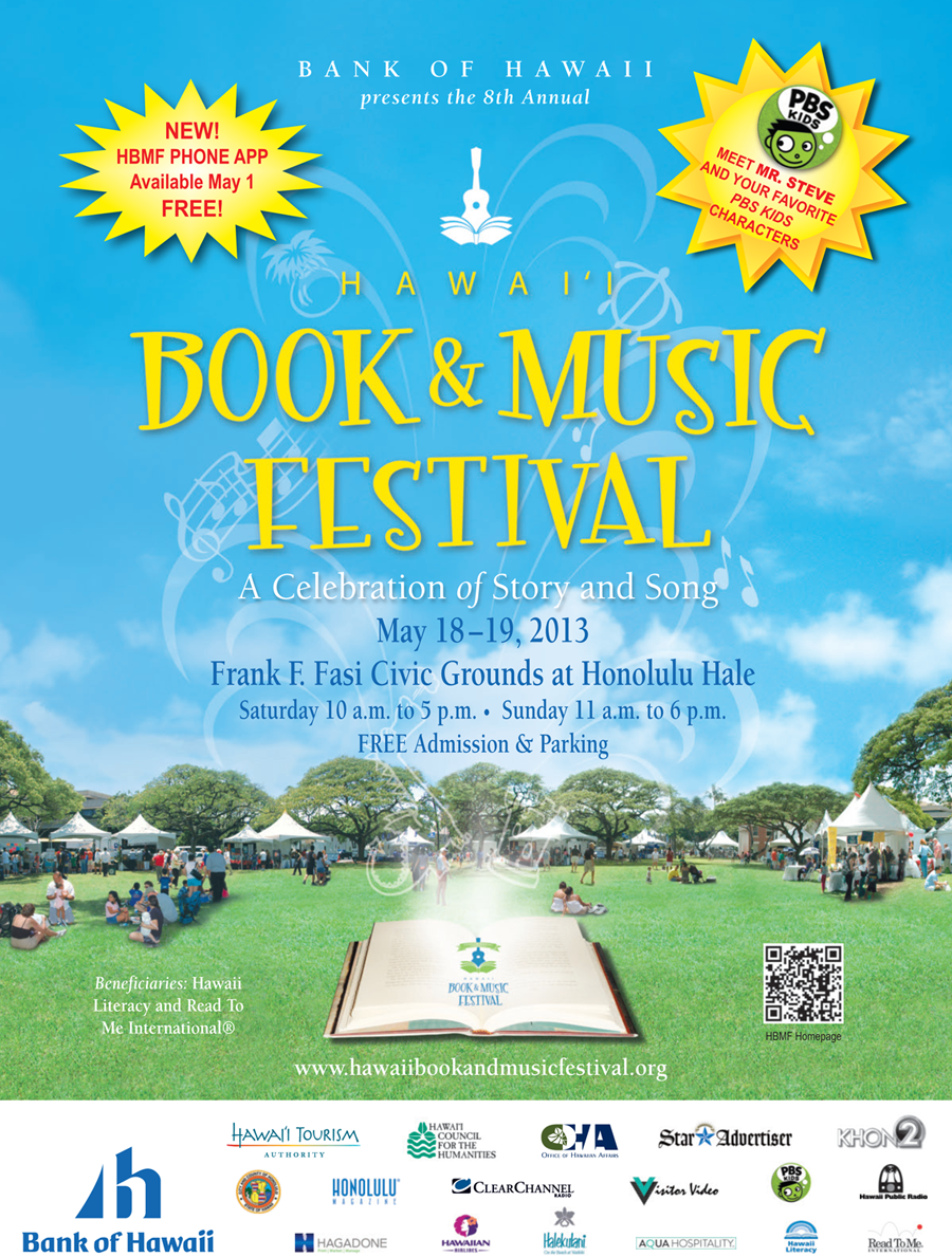 Hawaii Book and Music Festival, 2013. Posted on May 17, 2013 by nupepa Don’t forget this weekend’s Book and Music Fest! Hawaii Book and Music Festival 2013 Share this: Click to share on X (Opens in new window) X Click to share on Facebook (Opens in new window) Facebook Click to email a link to a friend (Opens in new window) Email Click to print (Opens in new window) Print Like Loading... Related