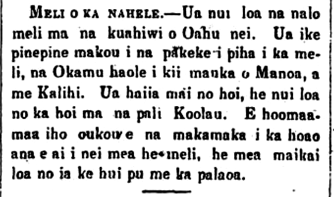 [It seems today is Honey Bee Day. There are many articles dealing with bees and honey from early on in the Hawaiian-Language Newspapers. I posted some earlier and they should be easily found by doing a search on the top of the right-hand column…