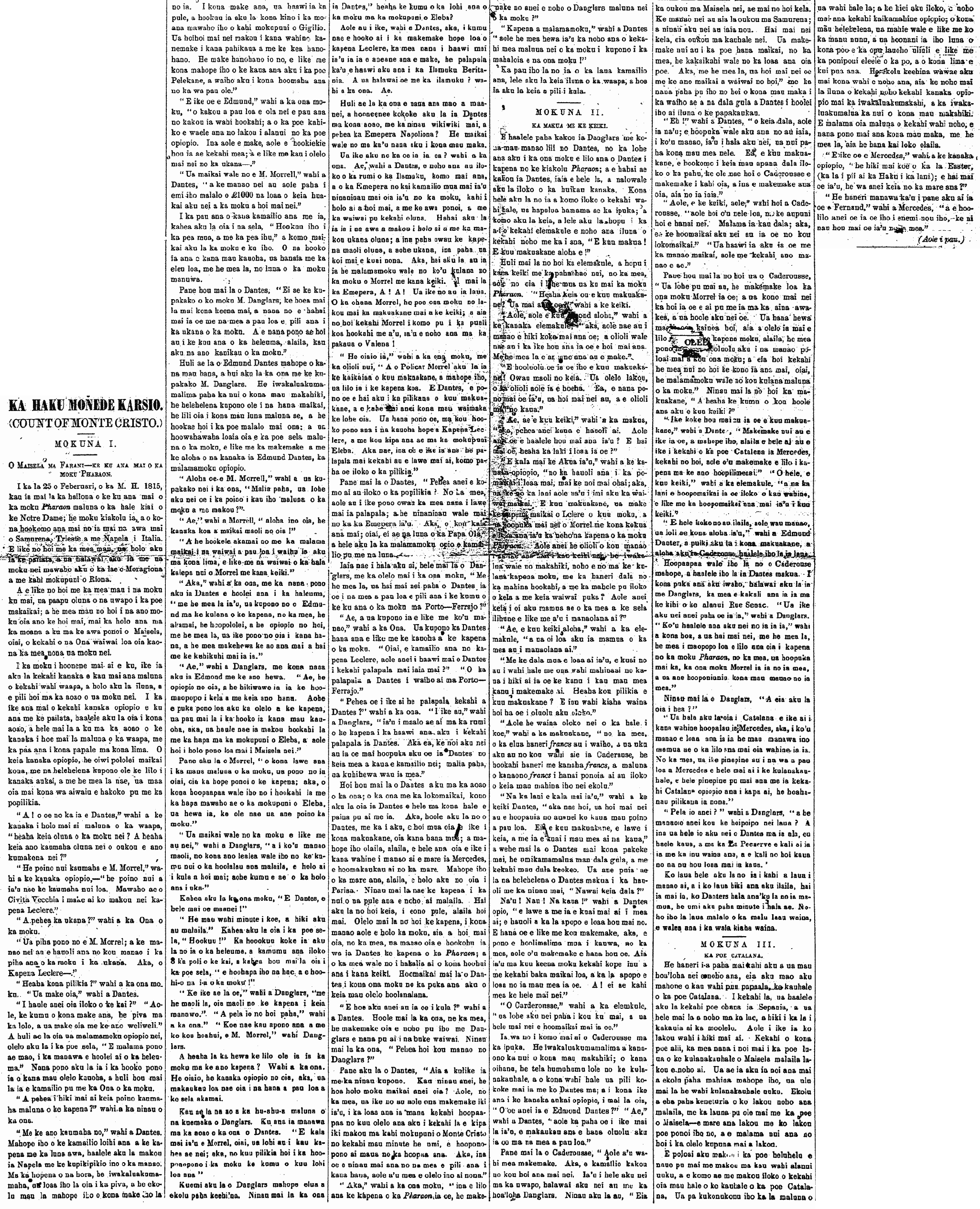 [Alexandre Dumas’ “Count of Monte Cristo” is translated in the newspaper Au Okoa, and ran for two and a half years, from 8/6/1868 to 2/9/1871! This is the opening of the story.