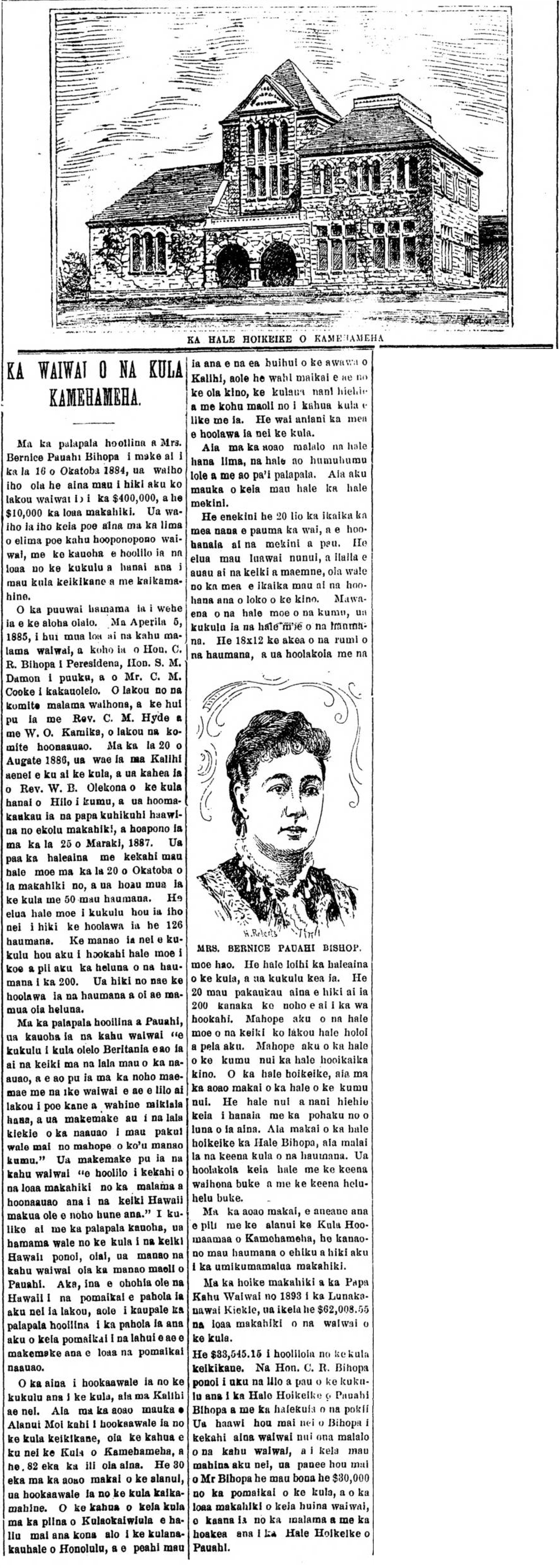 [It was just serendipity that caused me to notice this article the other day, and I thought with the re-opening of the new Pacific Hall at the Bernice Pauahi Bishop Museum, there was no better time to post this article about the actual beginnings of the Museum and of the Kamehameha Schools.