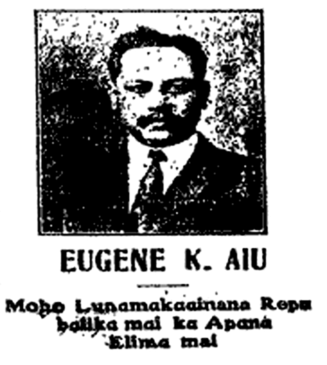 Vote for Eugene K. Aiu, 1914. Posted on August 10, 2014 by nupepa EUGENE K. AIU Republican Representative Candidate from the Fifth District (Holomua, 9/5/1914, p. 8) Ka Holomua, Buke I, Helu 49, Aoao 8. Sepatemaba 5, 1914. Share this: Click to share on X (Opens in new window) X Click to share on Facebook (Opens in new window) Facebook Click to email a link to a friend (Opens in new window) Email Click to print (Opens in new window) Print Like Loading... Related