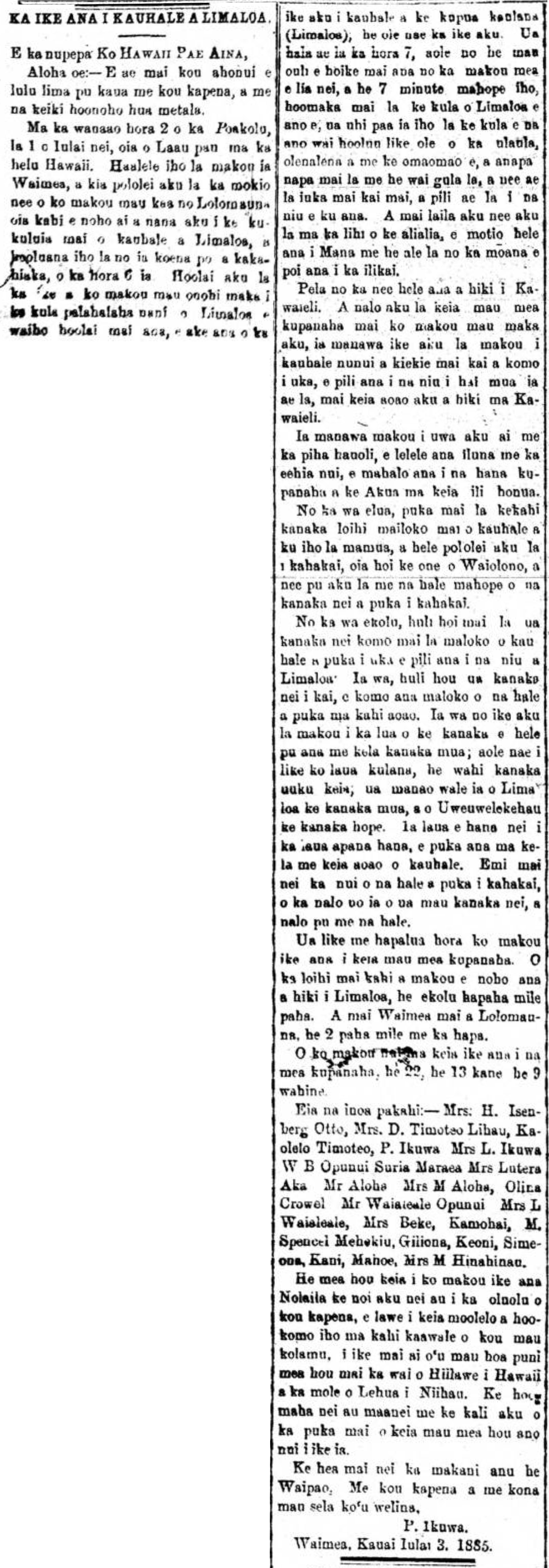(Ko Hawaii Pae Aina, 7/11/1885, p. 4)