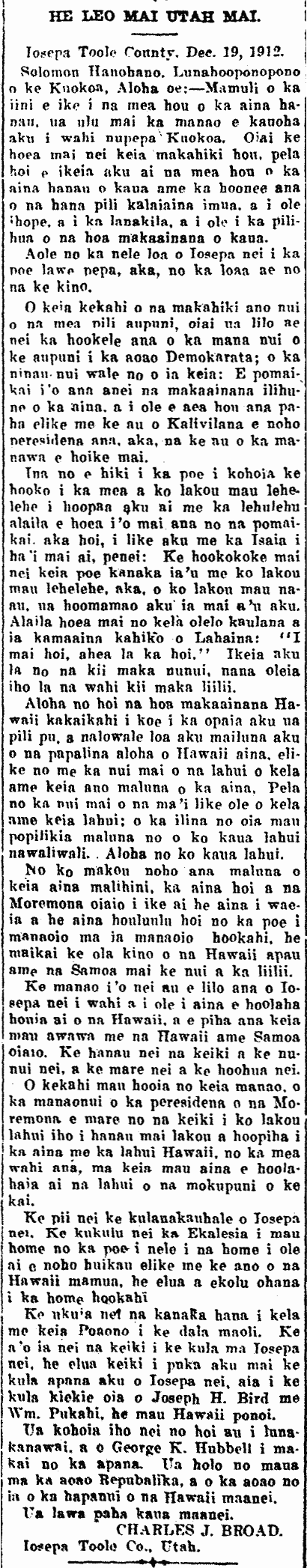 (Kuokoa, 1/10/1913, p. 6)