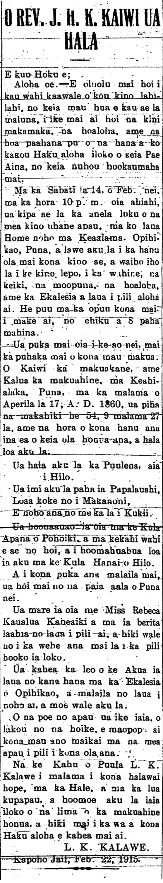 (Hoku o Hawaii, 3/4/1915, p. 3)