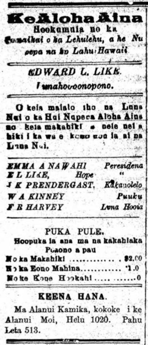 The following are the Officers of the Hui Nupepa Aloha Aina for this year until the time new Officers are newly installed.