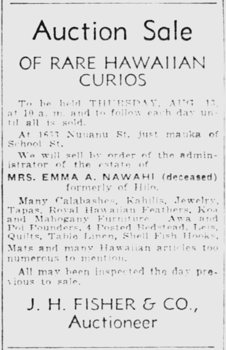 MRS. EMMA A. NAWAHI (deceased) formerly of Hilo.