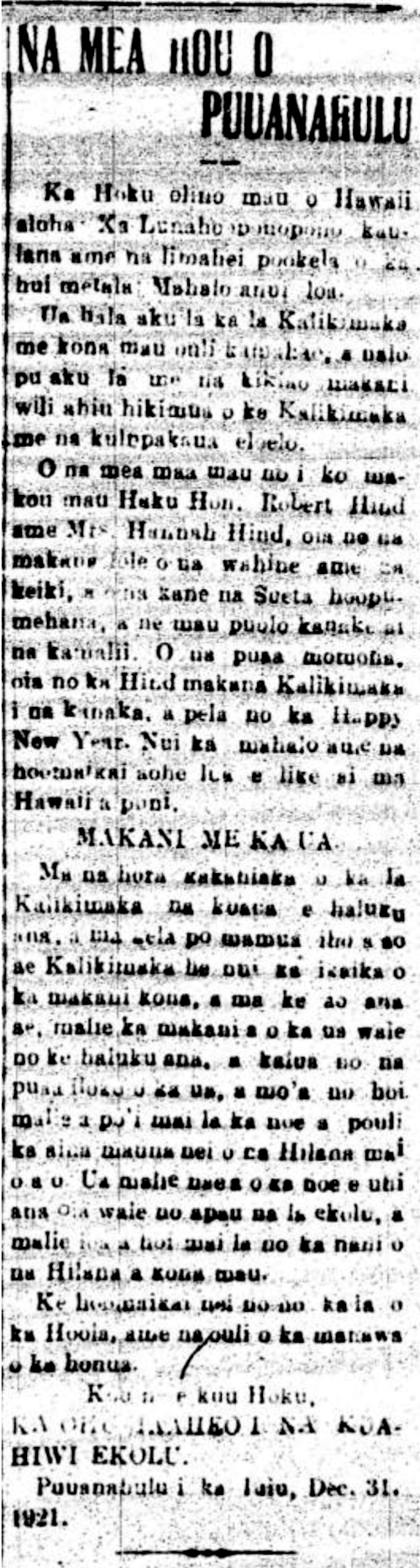 (Hoku o Hawaii, 1/6/1921, p. 3)