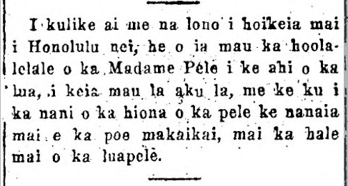 At the hour of 11 in the midday, April 26, at the festooned residence here in Honolulu nei of His Excellency [ka Mea Mahalo ia] Samuel Parker, Minister of Foreign Affairs, joined together by Rev. A. Mackintosh were Charles Maguire and Miss Mary H. Parker, the first born of the Minister, honored by the groomsman and bridesmaid [ku aoao], Palmer Woods and Miss Kamakee Cummins. At the same time and place, by that same pastor, Mr. Robert R. Hind Jr. and Miss Hannah Low were joined together, honored by the groomsman and bridesmaid, William Wright and Miss Hassinger. Amongst those who came to witness this distinguished marriage were the Alii the Queen, Continue reading