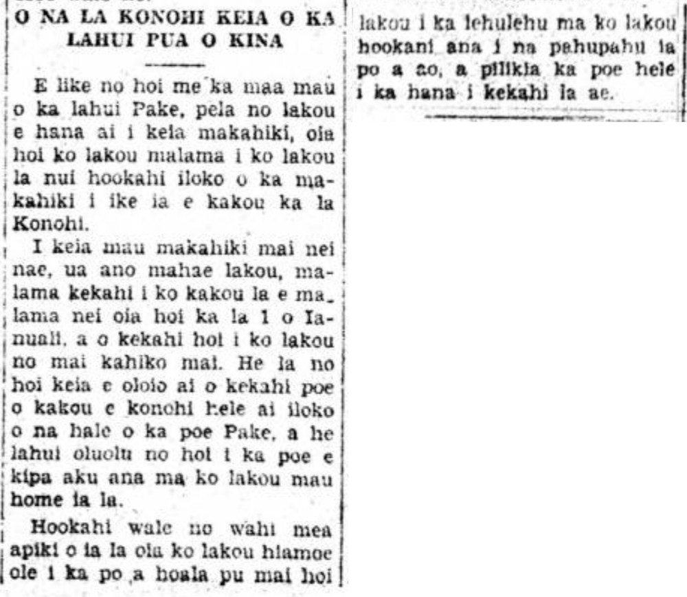 Just as usual for the Chinese lahui, so too are they doing this year, that is their celebrating their one holiday in the year known to us as the Konohi day.