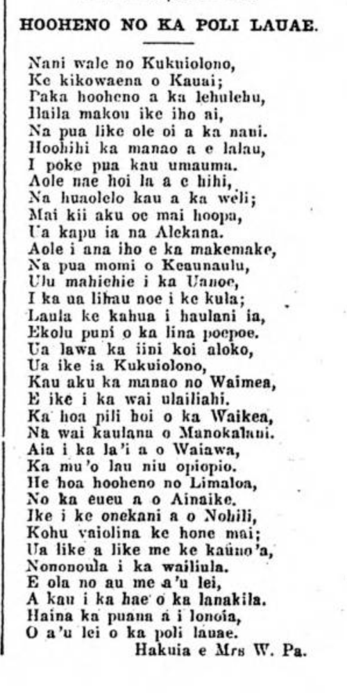 [Found under: “NA MEA HOU O HAWAII NEI.”]