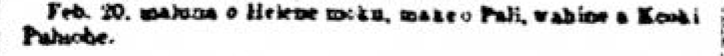 Married and passed on.—On the 19th of February, a black haole [haole eleele] who was naturalized [lived here until familiar? noho a kupa] in Hawaii; this was a haole who was familiar to us, that being G. W. Hyatt, was married to Pali wahine. Continue reading