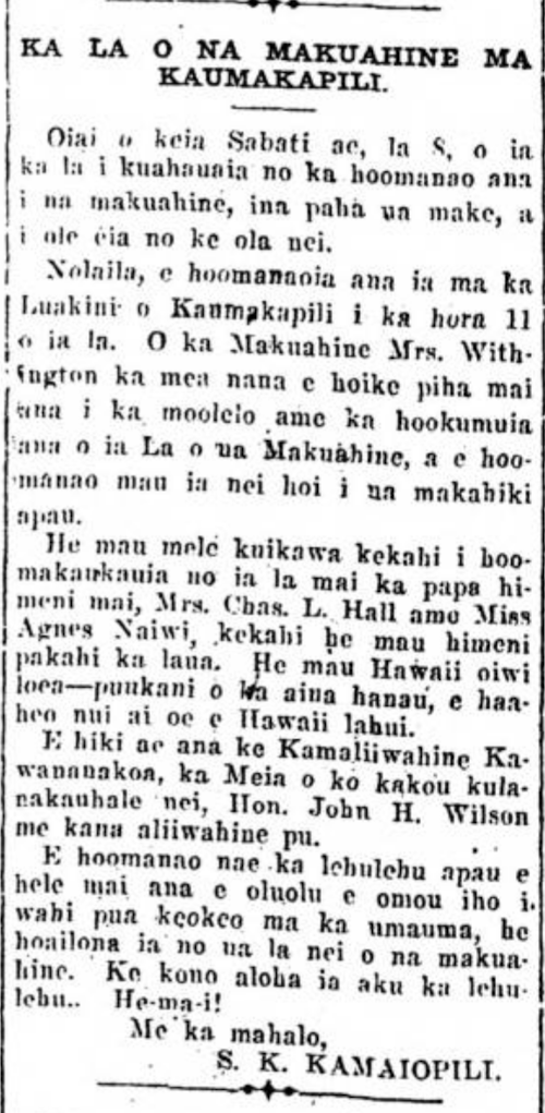 (Kuokoa, 5/6/1921, p. 4)