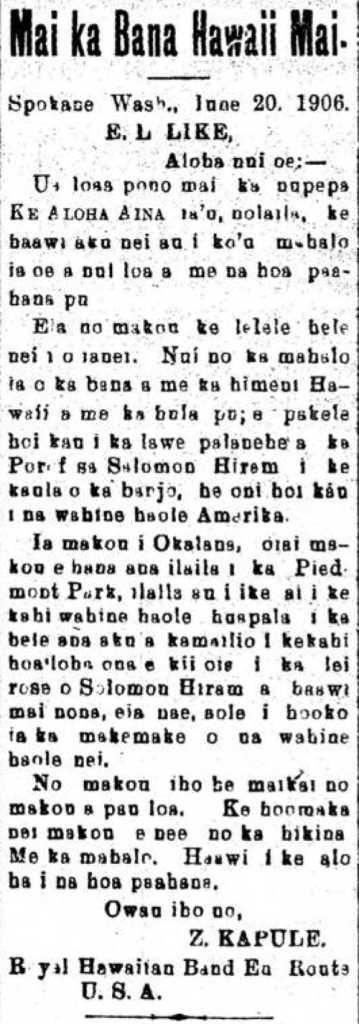 [For more on Zachariah Kapule, click here for the Bishop Museum’s Nūpepa Monday post from yesterday. There is even a photograph!]