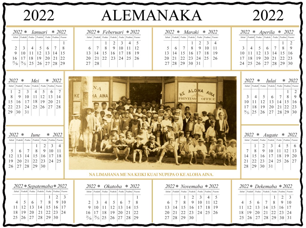 It has been a while since I made a calendar. The new year is almost here and I wanted to once again send you a new alemanaka following the original one put out by the Aloha Aina newspaper in 1906. Feel free to print it out for yourself or to share it with friends. To download the PDF file from which you can print, simply click on the image below.