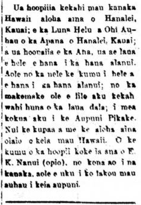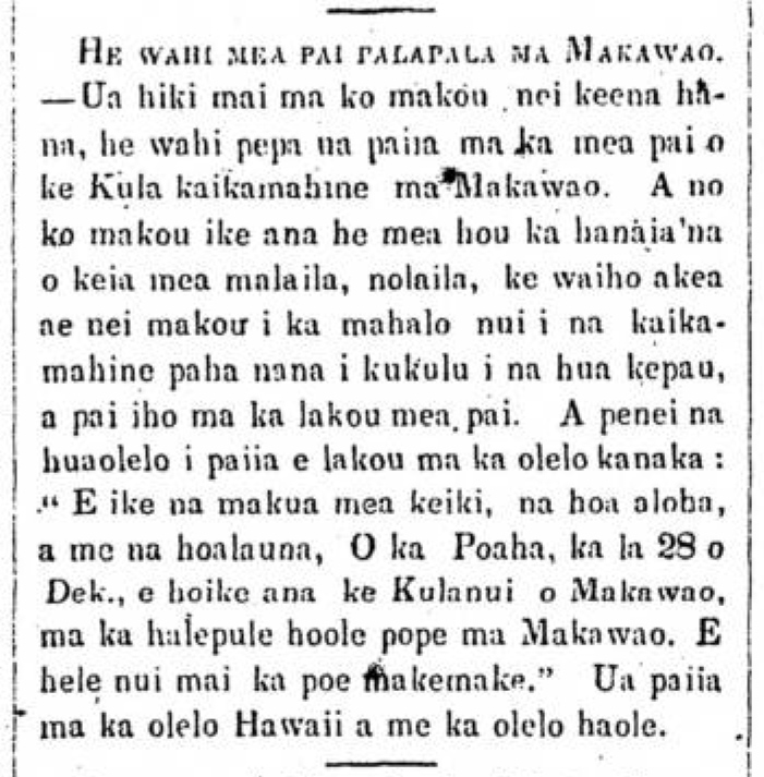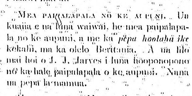 We awaited the alii but they did not arrive, and on the 30th of July, canon fire was heard from Punchbowl [Puuawaina] announcing their arrival. A little thereafter we saw the approach of the three double-masted ships: Hooikaika, Paalua, and Victoria. And at midday, they all entered the harbor. When the alii were close by the American warship, the Warren, they boarded and canon were shot off in salute to the king; the salute was a fine thing. The King went ashore and the soldiers were waiting; cannons and drums were sounded, and he and his wife along with the alii and the officers went into his house at Maunakilika, and it is there that he resides these days.
