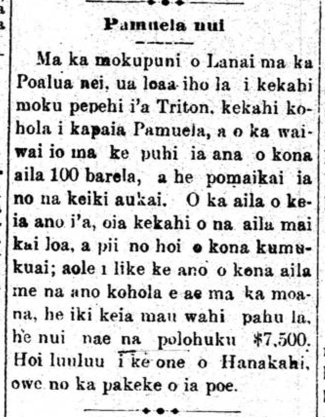 We awaited the alii but they did not arrive, and on the 30th of July, canon fire was heard from Punchbowl [Puuawaina] announcing their arrival. A little thereafter we saw the approach of the three double-masted ships: Hooikaika, Paalua, and Victoria. And at midday, they all entered the harbor. When the alii were close by the American warship, the Warren, they boarded and canon were shot off in salute to the king; the salute was a fine thing. The King went ashore and the soldiers were waiting; cannons and drums were sounded, and he and his wife along with the alii and the officers went into his house at Maunakilika, and it is there that he resides these days.