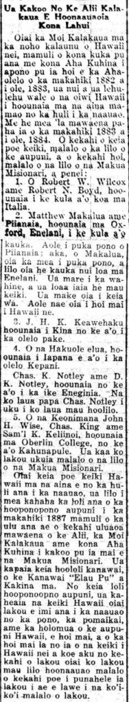 5. The Gentlemen John H. Wise, Charles King, and Samuel K. Keliinoi, were sent to Oberlin College, to Divinity School. Their expenses were paid by the Missionary Fathers.