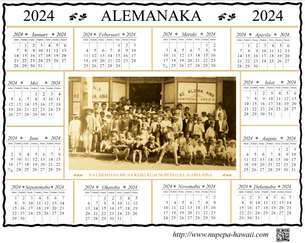 For a pdf file of this calendar fashioned after the 1906 Aloha Aina calendar to print out for your wall, just click on the image below! [I think the days are correct now!]