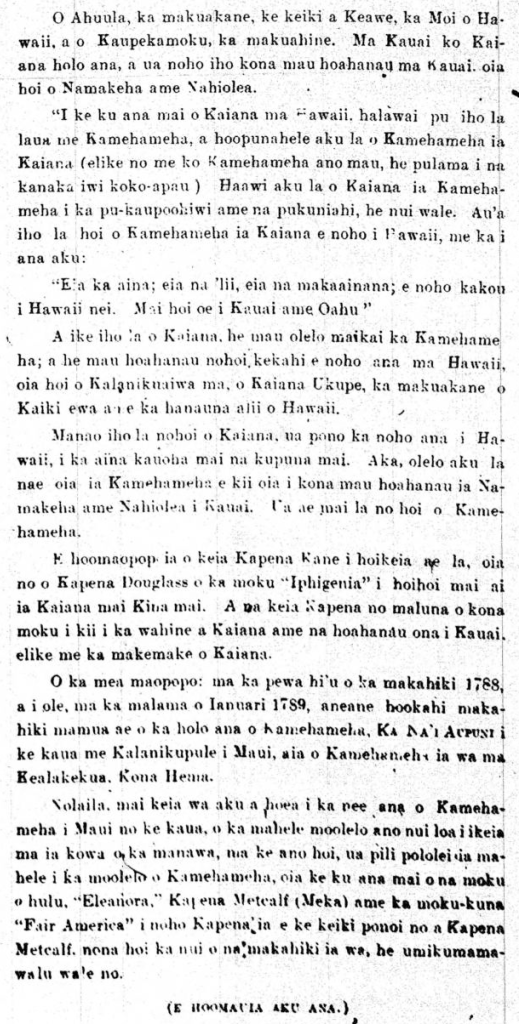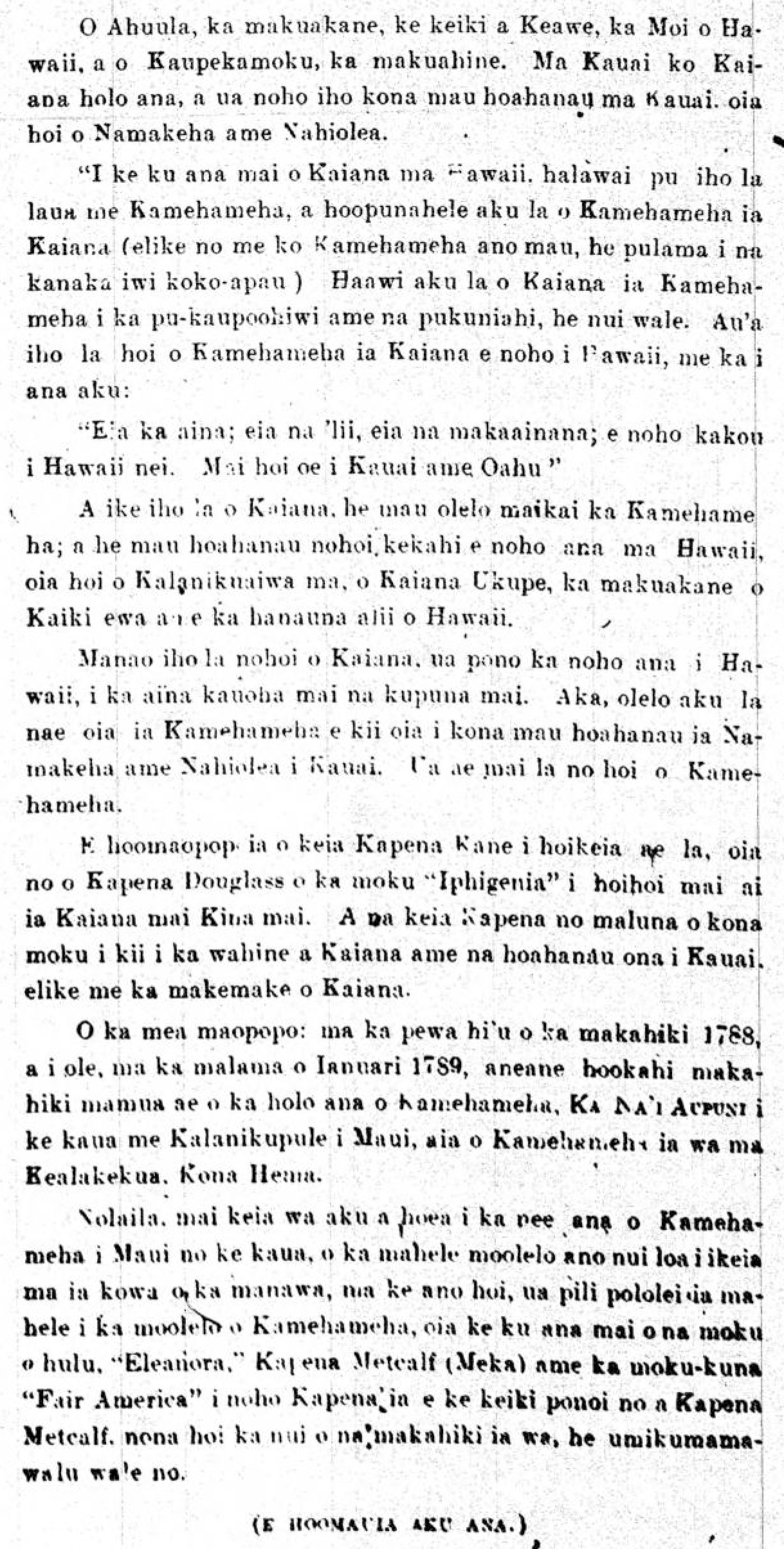 [Found in “HE MOOLELO NO KAMEHAMEHA I, Ka Na=i Aupuni o Hawaii”]