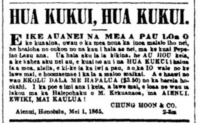 (Kuokoa, 5/4/1865, p. 3)