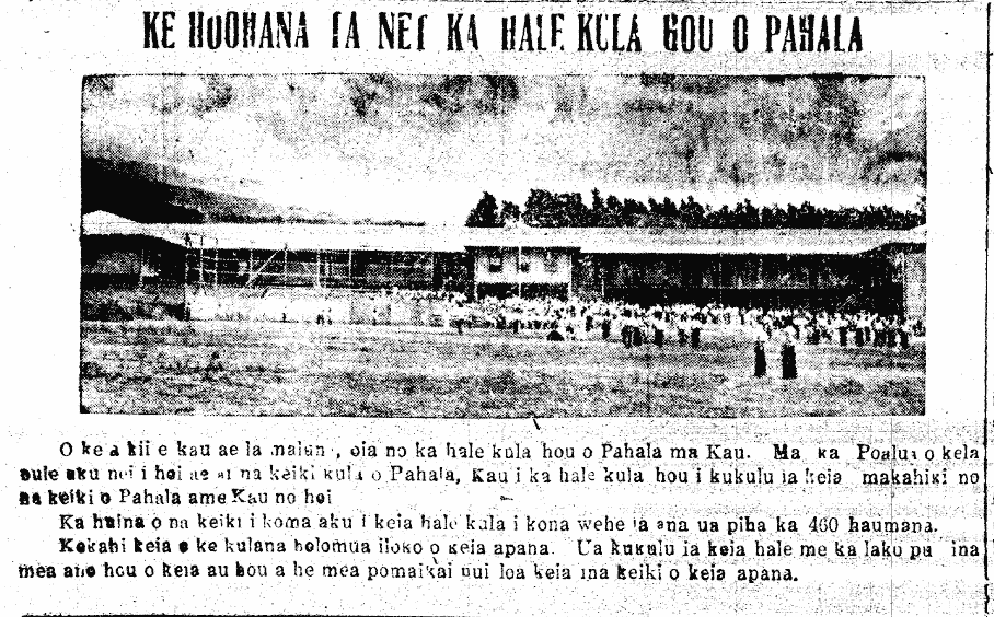This picture above is of the new school of Pahala in Kau. On Tuesday of this past week, the children of Pahala, Kau returned to the new school house built this year for the children of Pahala and Kau.