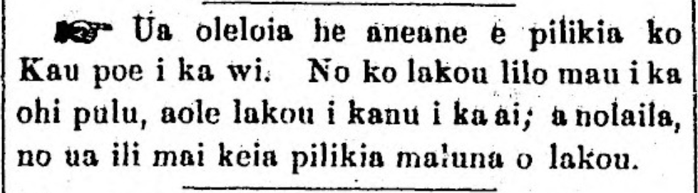 I am reporting to you that the Cotton [Pulupulu] (Sea Island Cotton) is sprouting well in Waimea, Koolauloa, Oahu; you will surely rejoice with my fellow Cotton planters living in other places of these Islands, who planted this thing, Pulupulu, like me.