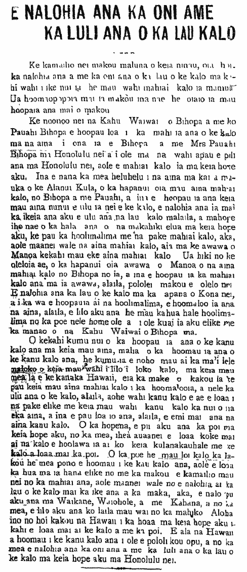 Pertaining to the crops.—Things that are planted grow stuntedly [kakanalii] because of aphids [Eleao]; talk of the Eleao is all over Hilo Paliku. Continue reading