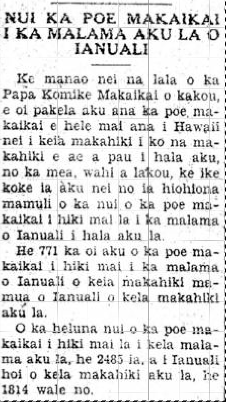 (Hoku o Hawaii, 2/1/1917, p. 1)