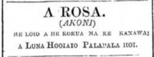 A. Rosa said: The subject for discussion this evening is, “Our denunciation against adopting a Republican for of Government for Hawaii.” You are at liberty to express your views, whether pro or con. The first speaker—J. L. Kaulukou—will speak against the Republican movement. The time allotted to each speaker is limited to ten minutes.
