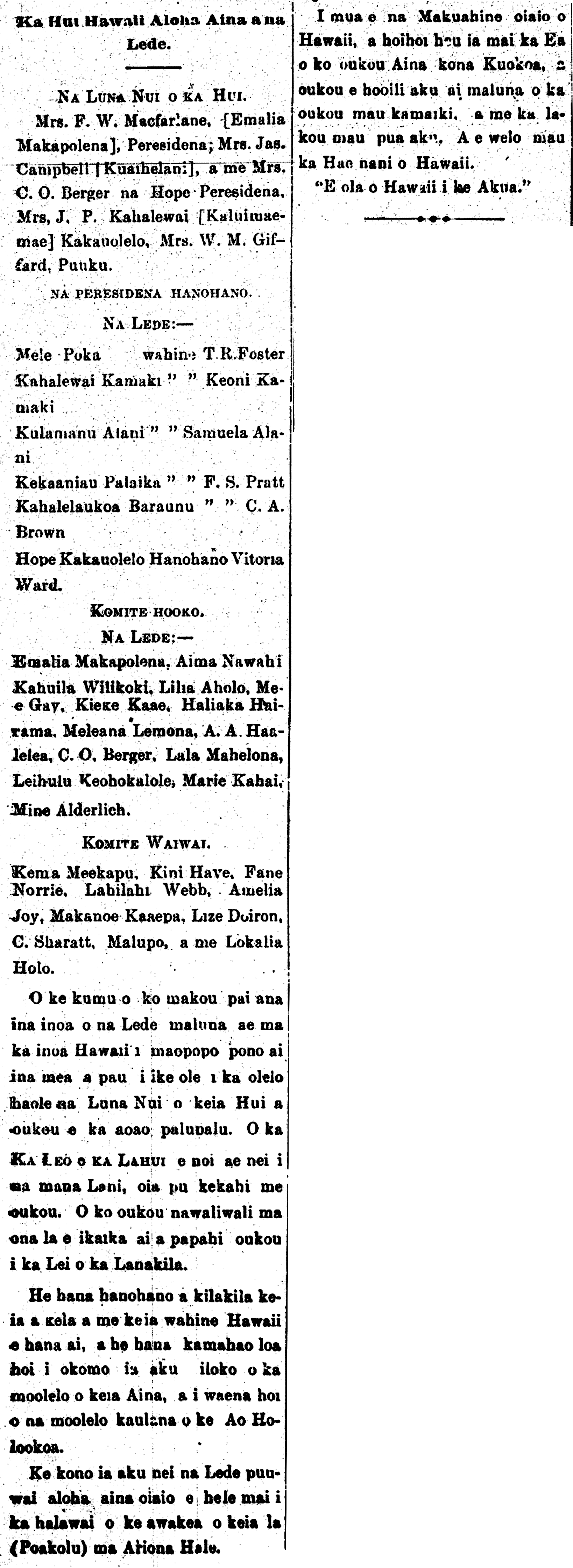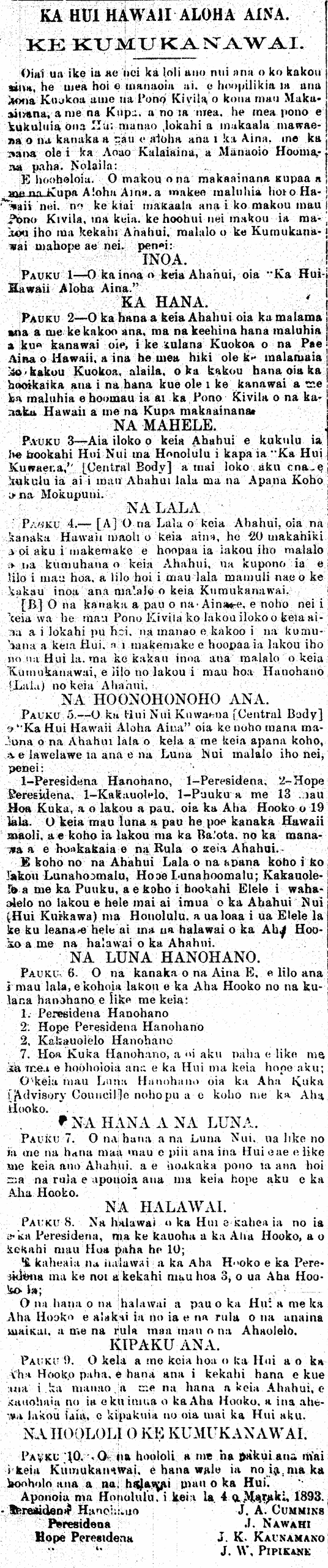 (Leo o ka Lahui, 5/3/1893, p. 2)