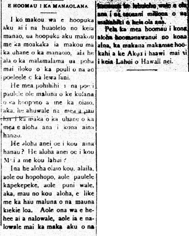 That is the way one who continues to patiently be patriotic for his land is; that is the single precious gift God gave this Lahui of Hawaii nei.