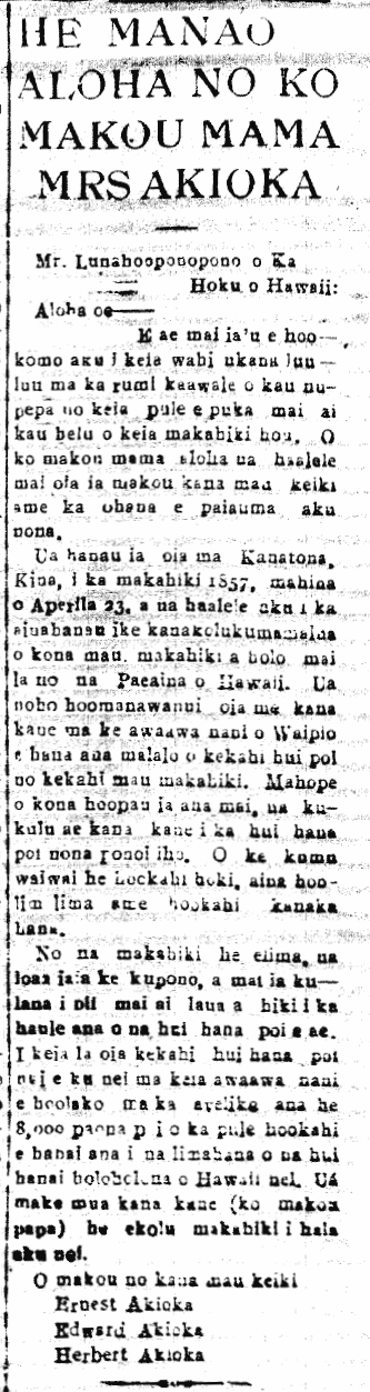HE MANAO ALOHA NO KO MAKOU MAMA MRS AKIOKA
