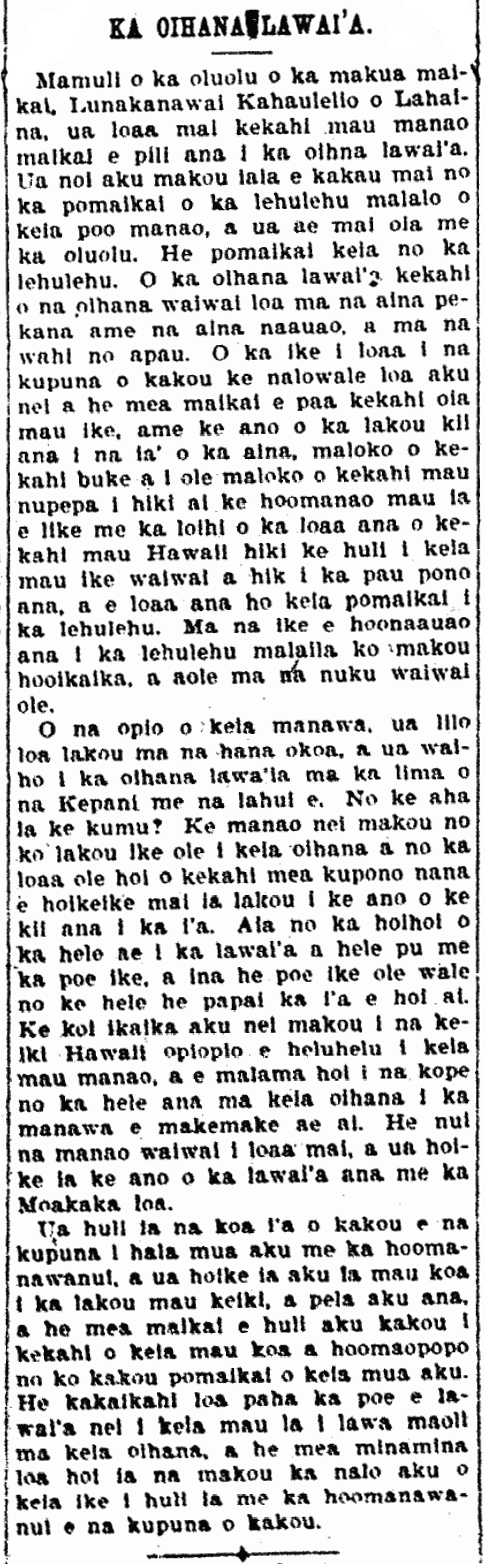 King Kamehameha III was sailing aboard an American warship for the Kanilehua rains of HIlo, and along with him was G. P. Kauka [G. P. Judd], the father of the Chief Justice A. F. Kauka [A. F. Judd], was with him; he was a favorite and a translator for the alii aboard the ship. The Captain wanted his officers to explain clearly the length in time and the direction, and while the officers were making preparations, S. P. Kalama Waiawaawa asked the King: