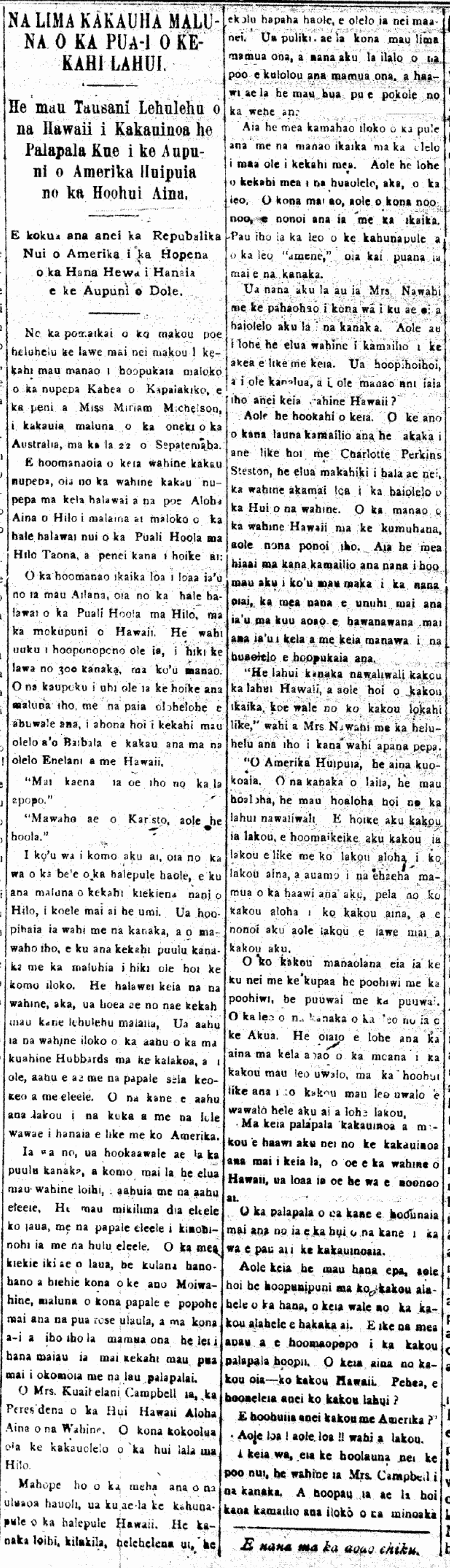 ![[Translation.] A Dirge for Mrs. Coan...](https://nupepa-hawaii.com/wp-content/uploads/2013/01/kuokoa_11_2_1872_7.png?w=584)