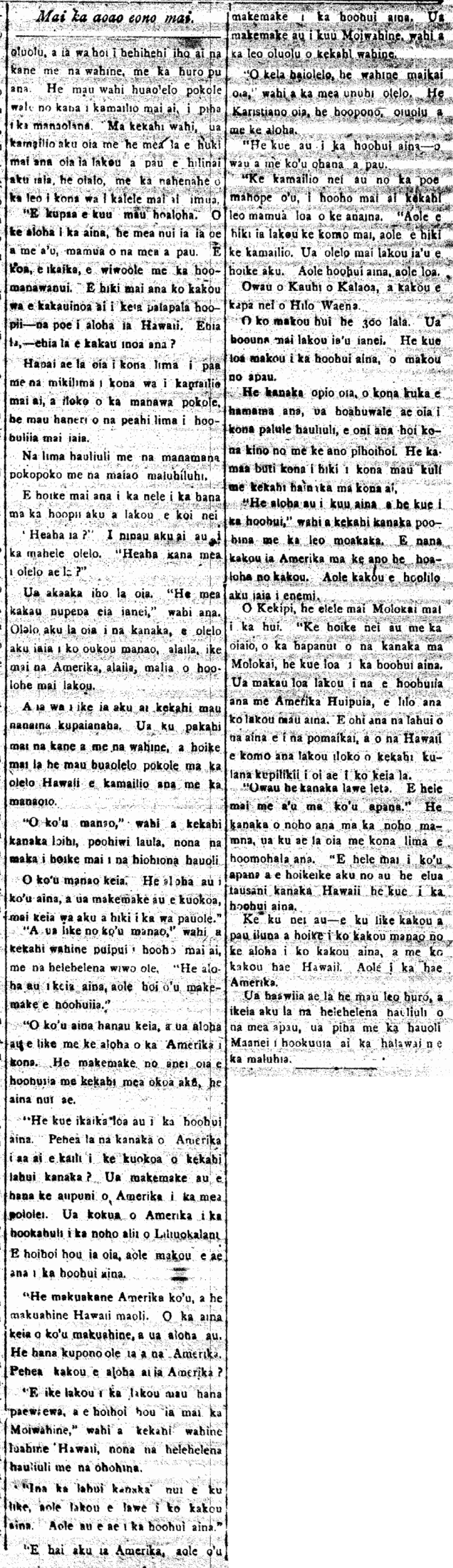 (Kuokoa, 11/2/1872, p. 7)