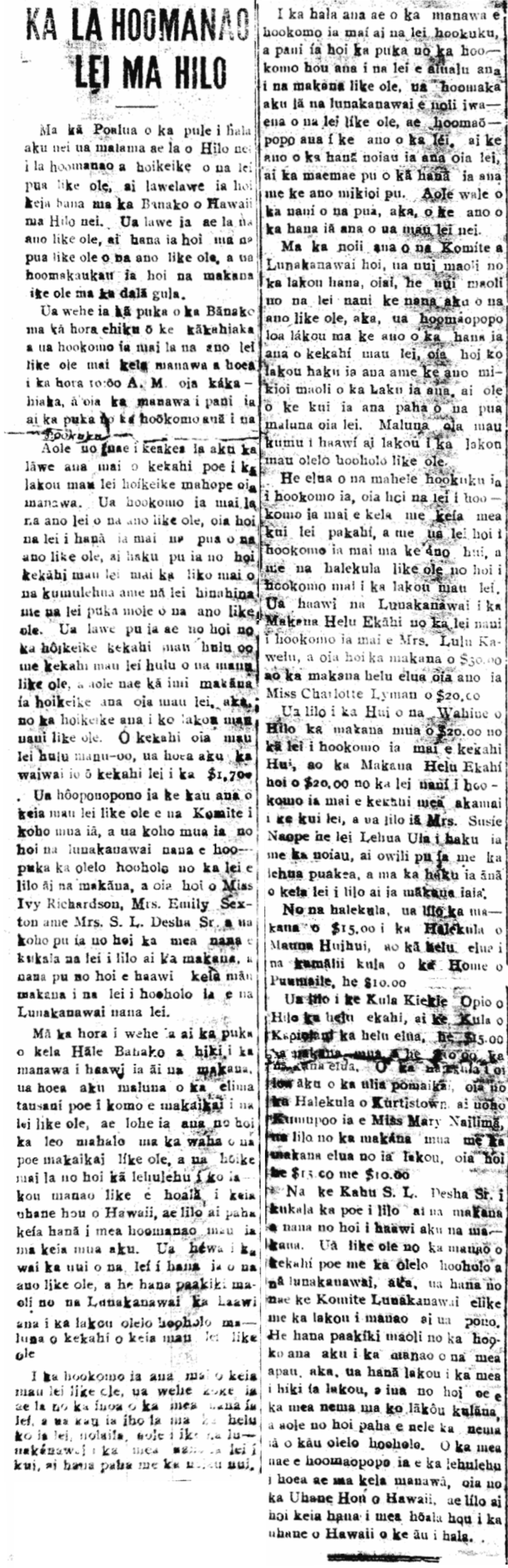 I hakuia ma ke noiia mai no ka ekalesia a me na makamaka o Hilo.
