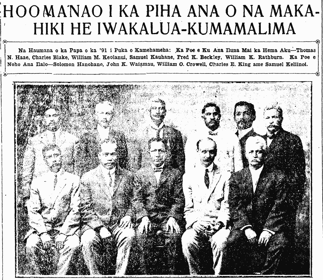 High holiday [Kamehameha Day] was kept by the inhabitants of the Leper Settlement throughout the 11th of June. As a matter of fact the jollification began on the eve of Kamehameha Day, with a concert by the “H. H. K.’s” [Hui Hooikaika Kino] or the Kalaupapa Athletic Club, in Beretania hall. The program consisted of athletic exercises, singing, etc.