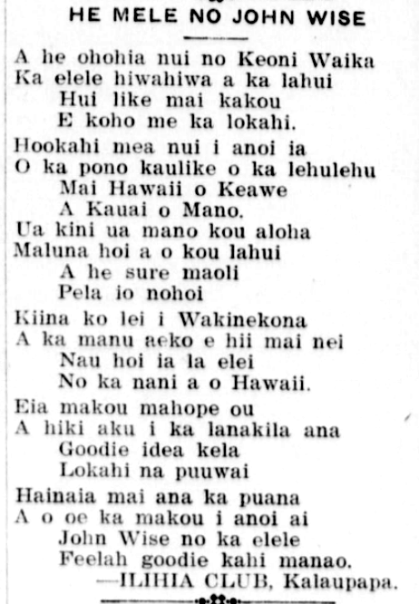 There was a fair gathering at the Kamehameha School on Wednesday afternoon, the occasion being the first observance of Founder’s Day, the birthday anniversary of the late Mrs. Bernice Pauahi Bishop, by whose munificent bequest the institution was founded. The exercises were held in the gymnasium and the following invited guests were present: H. R. H. Princess Liliuokalani attended by Mrs. J. O. Carter, Hon. C. R. Bishop, Rev. C. M. Hyde, D. D., and Mrs. Hyde, Rev. E. G. Beckwith, D. D., Rev. W. C. Merritt and Mrs. Merritt, Lieut. Crawford, U. S. N., Mrs. W. B. Oleson, Hon. W. F. Allen and Mrs. Allen, Hon. H. M. Whitney, Capt. Bourke, R. N., Capt. Acland, R. N., Major-General Cunliffe, R. A., Hon. S. M. Damon, Mr. W. W. Hall and Mrs. Hall, Prof. M. M. Scott and Mrs. Scott, Mr. J. H. Paty and Mrs. Paty, Mrs. J. U. Kawainui, Mrs. Napoliona, Prof. W. D. Alexander, Mr. C. M. Cooke and Mrs. Cooke, Mrs. Hartwell, Mr. T. G. Gribble and Mrs. Gribble, Mrs. Whitman, and a few others. Continue reading