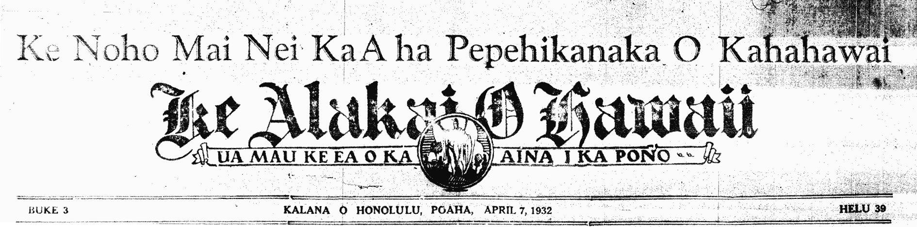 (Alakai o Hawaii, 4/7/1932, p. 1)