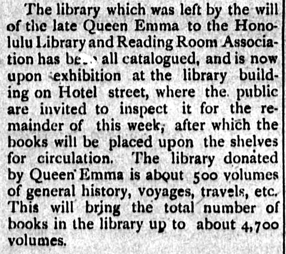 This group, the Daughters of Hawaii, upholds the name of Queen Emma Kaleleonalani, and her birthday is cherished by them, and the writer observed the commemoration held by the association which holds dear the name placed upon them, the Daughters of Hawaii.