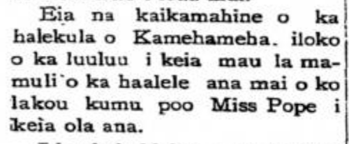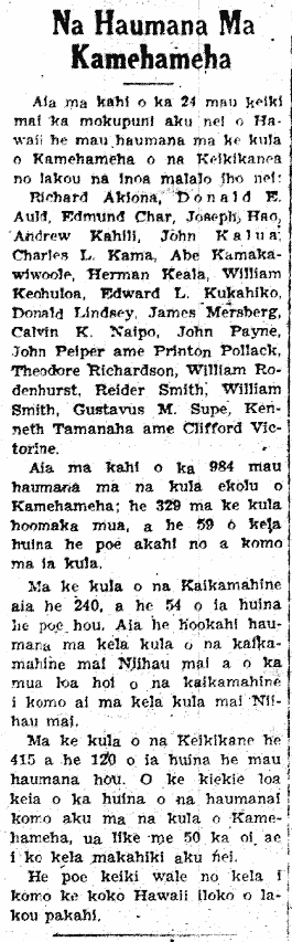 At the last work meeting of the Kamehameha Alumni Association which met last Saturday, the association decided to build a memorial to the woman who put effort in and worked for the good of Hawaiian girls, and gave the past 20 years of her life working at the school. Continue reading
