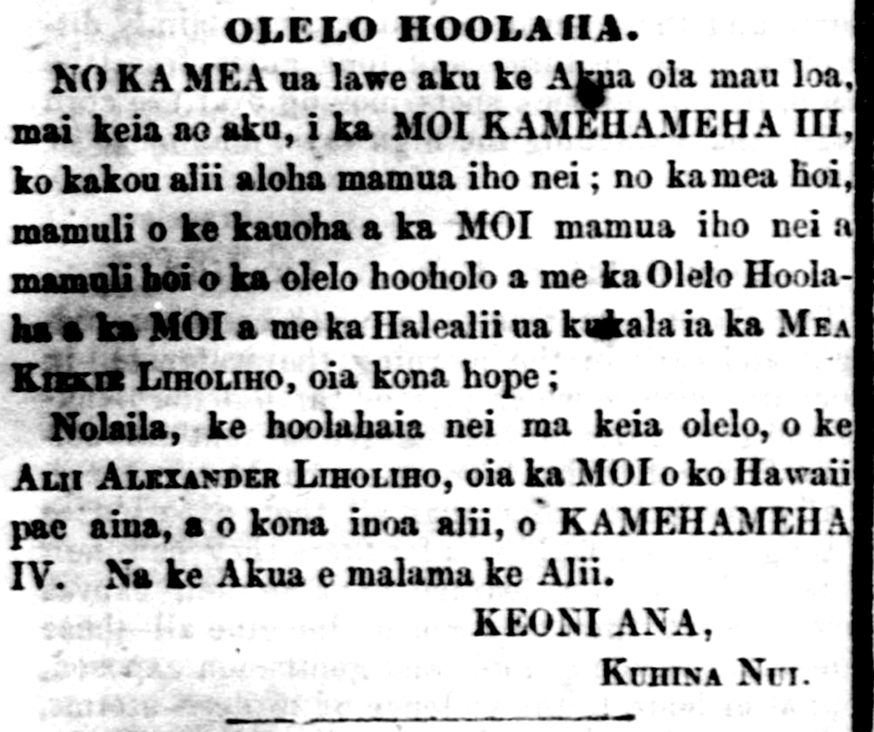 Kamehameha III King of the Hawaiian Islands.