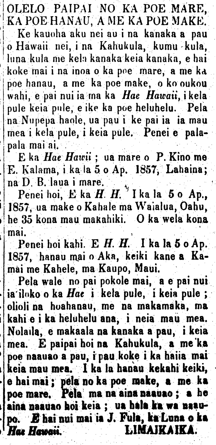 Ka Elele, Buke 1, Pepa 14, Aoao 105-106. Okatoba 7, 1845.