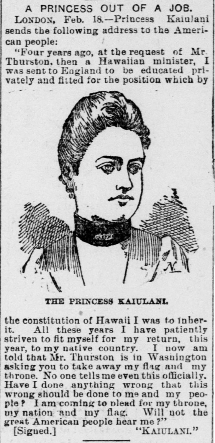 Princess Kaiulani protests, 1893.
