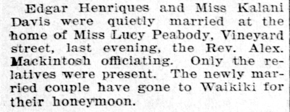 Kalanikiekie, the hanai of Lucy Peabody escaped from a bullet errantly shot by a P. G. soldier while she was standing at a window. The bullet flew and struck above her head a she stood, exited, and struck a bedpost, and the bullet fell down. Continue reading